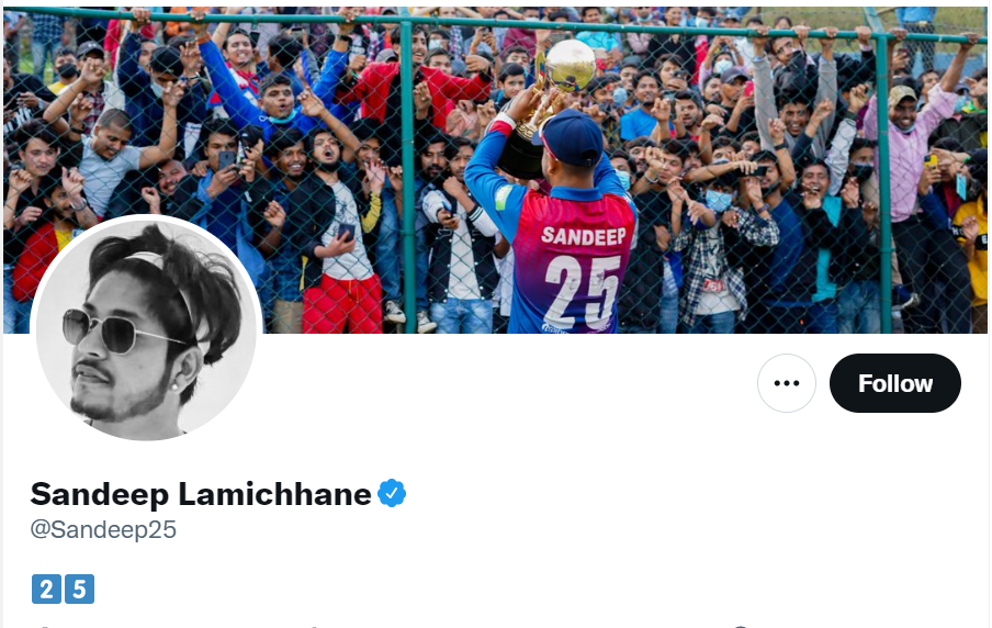 नेपाल क्रिकेट संघ (क्यान)को निलम्बनमा परेका सन्दीप लामिछानेले सामाजिक सञ्जाल ट्विटरको बायो हटाएका छन् । एक १७ वर्षीया किशोरीलाई बलात्कार गरेको आरोपमा लामिछानेविरुद्ध जिल्ला अदालत काठमाडौंले पक्राउ पूर्जी जारी गरेपछि बिहीबार क्यानले लामिछानेलाई निलम्बन गरेको थियो ।