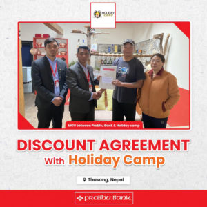 प्रभु बैंक लिमिटेड र थासाङको कोबाङस्थित होलिडे क्याम्पबीच विभिन्न सेवाहरुमा छुट प्रदान गर्नेसम्बन्धी सम्झौता भएको छ।