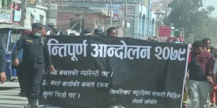 रकम फिर्ताको माग गर्दै शिव शिखर बहुउद्देश्यीय सस्थाका बचतकर्ता आन्दोलित