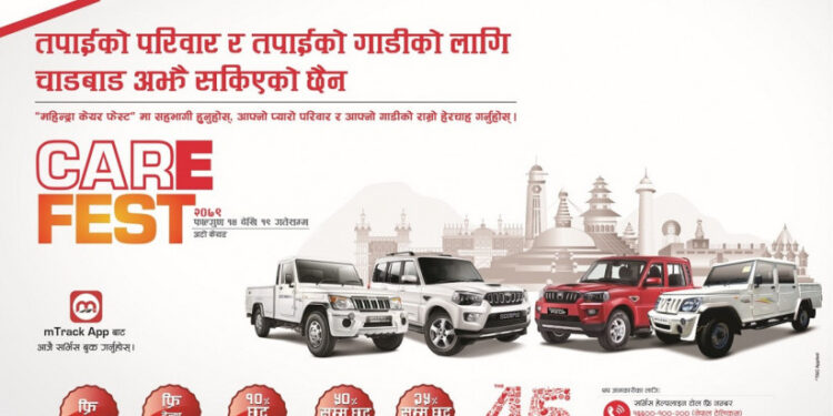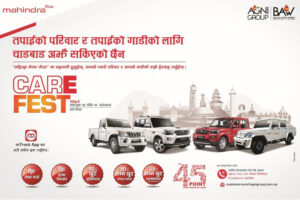 महिन्द्रा फोरह्विलरको नेपालका लागि एकमात्र अधिकृत बिक्रेता अग्नि ग्रुपको सहायक कम्पनी बालाजु अटो वर्कस प्रालिले यही फागुन १४ गतेदेखि फागुन १९ गतेसम्म देशव्यापी महिन्द्रा केयर फेस्ट–२०२३ आयोजना गर्ने भएको छ।